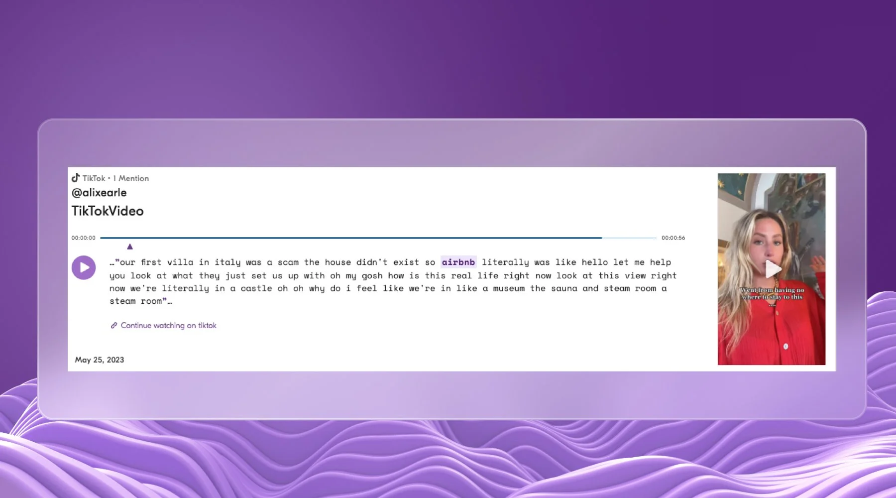 När TikTok profilen Alix Earle, (7+ miljoner följare) delade att hon blivit strandsatt utan boende i Italien, fångade Airbnbs marknadsteam upp klippet. Inom några timmar hade de ordnat en lyxvilla åt henne och hennes vänner. Resultatet? Enorm organisk synlighet, positiva reaktioner och bred mediebevakning – allt tack vare snabb, smart social listening.